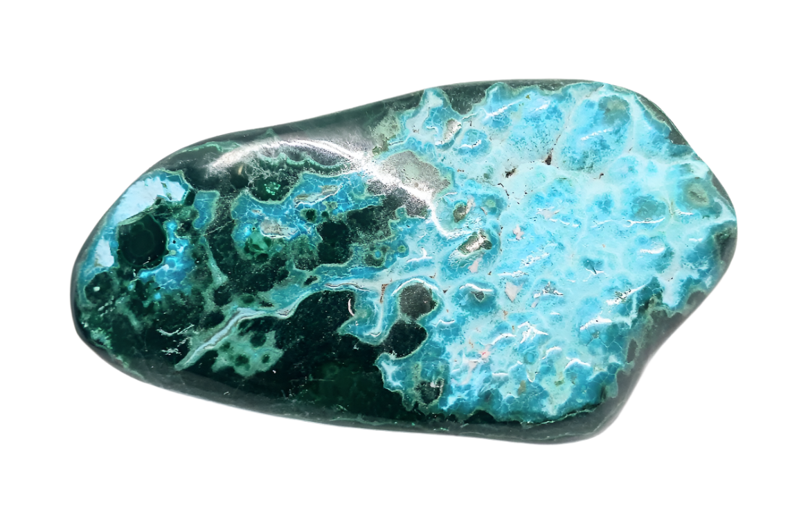 This handmade 126g malachite crystal with chrysocolla raw specimen showcases a stunning blend of vibrant green malachite and rich blue-green chrysocolla. The intricate banding and swirling patterns of the malachite offer a captivating visual appeal, while the chrysocolla's unique texture and coloration provide an intriguing contrast. Together, these minerals create a striking piece that not only serves as a beautiful decorative element but also embodies the metaphysical properties associated with both stones, including emotional healing and communication enhancement. Perfect for collectors or as a thoughtful gift, this natural specimen highlights the beauty of geological artistry.