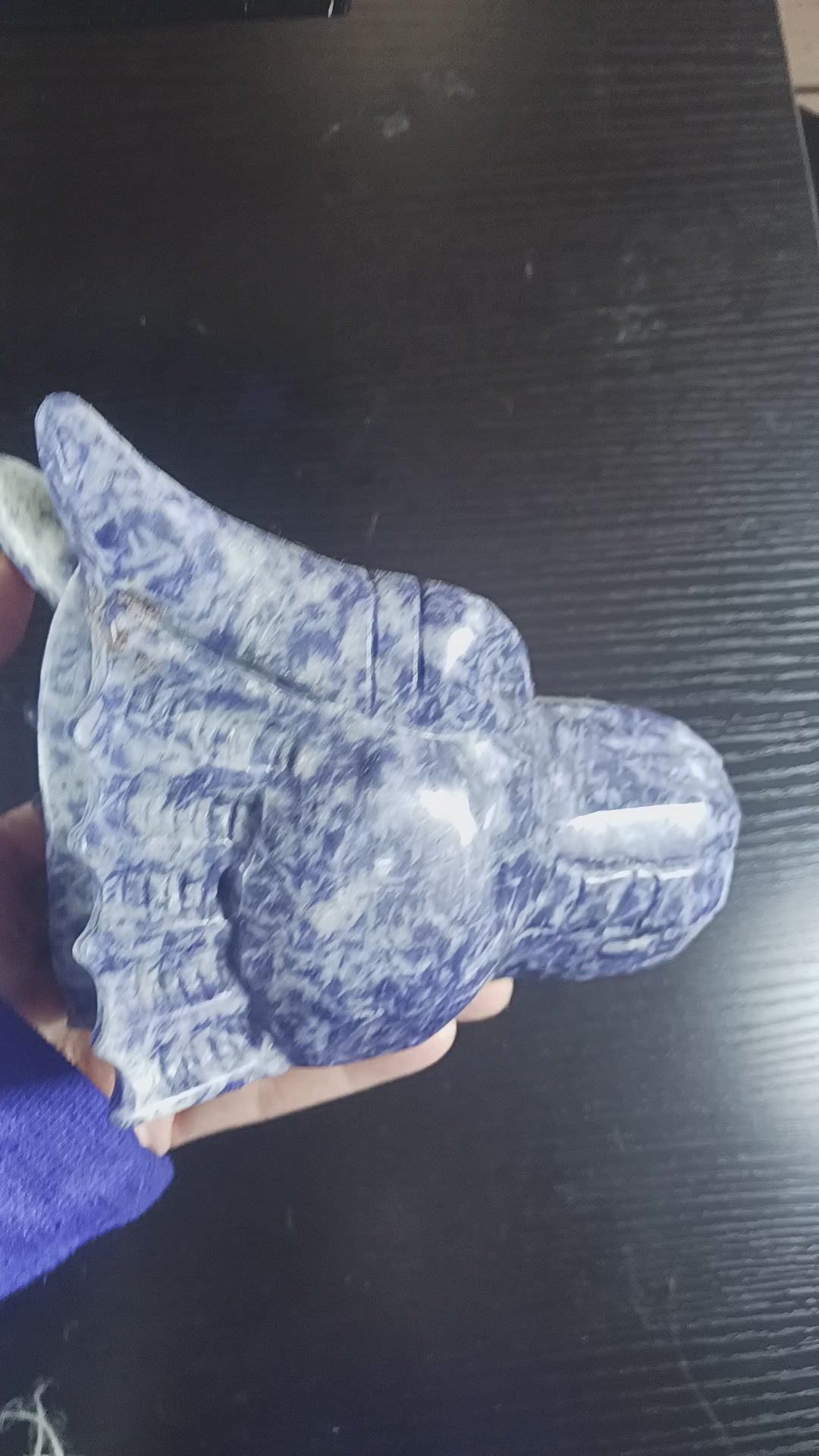 This Handmade 2.8lbs Sodalite Crystal Dragon Head is a stunning piece of art crafted from sodalite crystal. This unique handmade sculpture features the intricate and majestic form of a dragon's head, carved with exquisite attention to detail. Weighing 2.8 pounds, this piece is not only a beautiful decorative item but also carries the metaphysical properties associated with sodalite crystal, known for promoting inner peace, intuition, and harmony. It's a captivating and meaningful addition to any crystal or dragon enthusiast's collection.