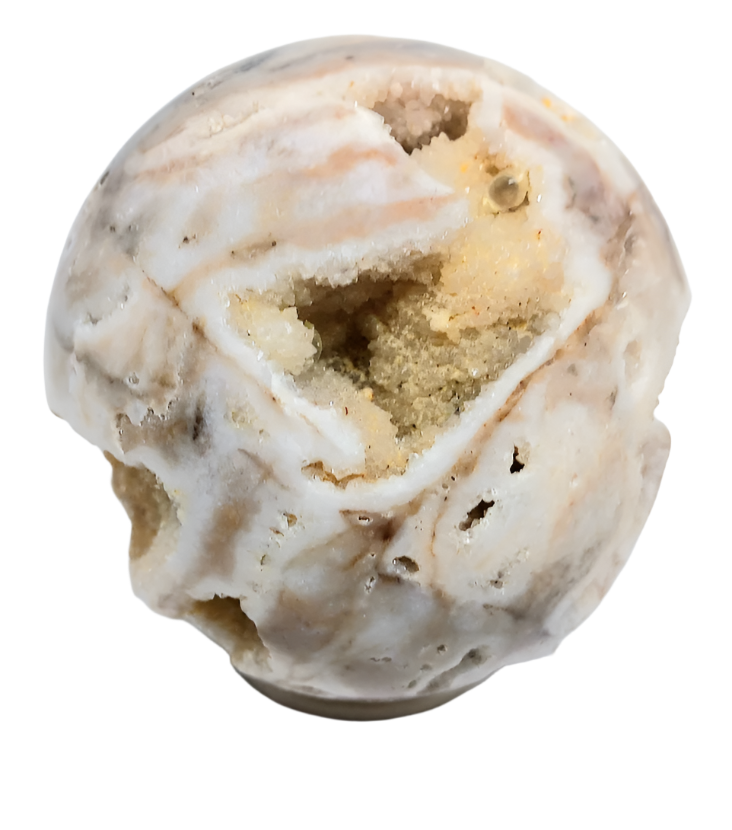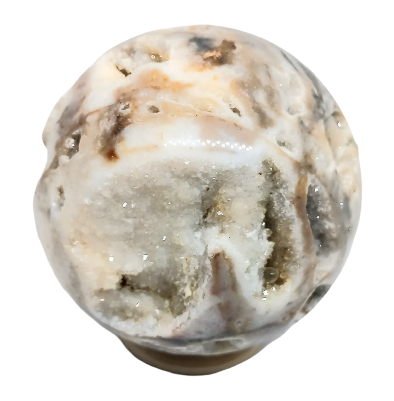 This handmade 277g Sphalerite crystal sphere is truly remarkable. The sphere is expertly crafted to showcase the natural beauty of the Sphalerite crystal, displaying its deep, rich color and unique formations. At 277g, it has a substantial weight, and its smooth, polished surface reflects light beautifully. This sphere would make a stunning addition to any crystal collection or a standout piece for display. All spheres come with a wood sphere holder.