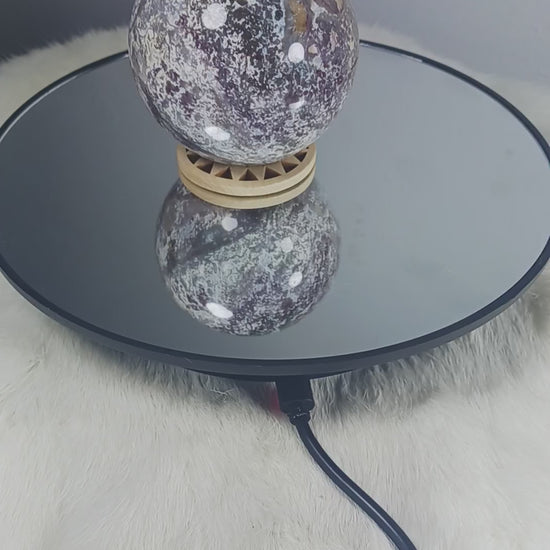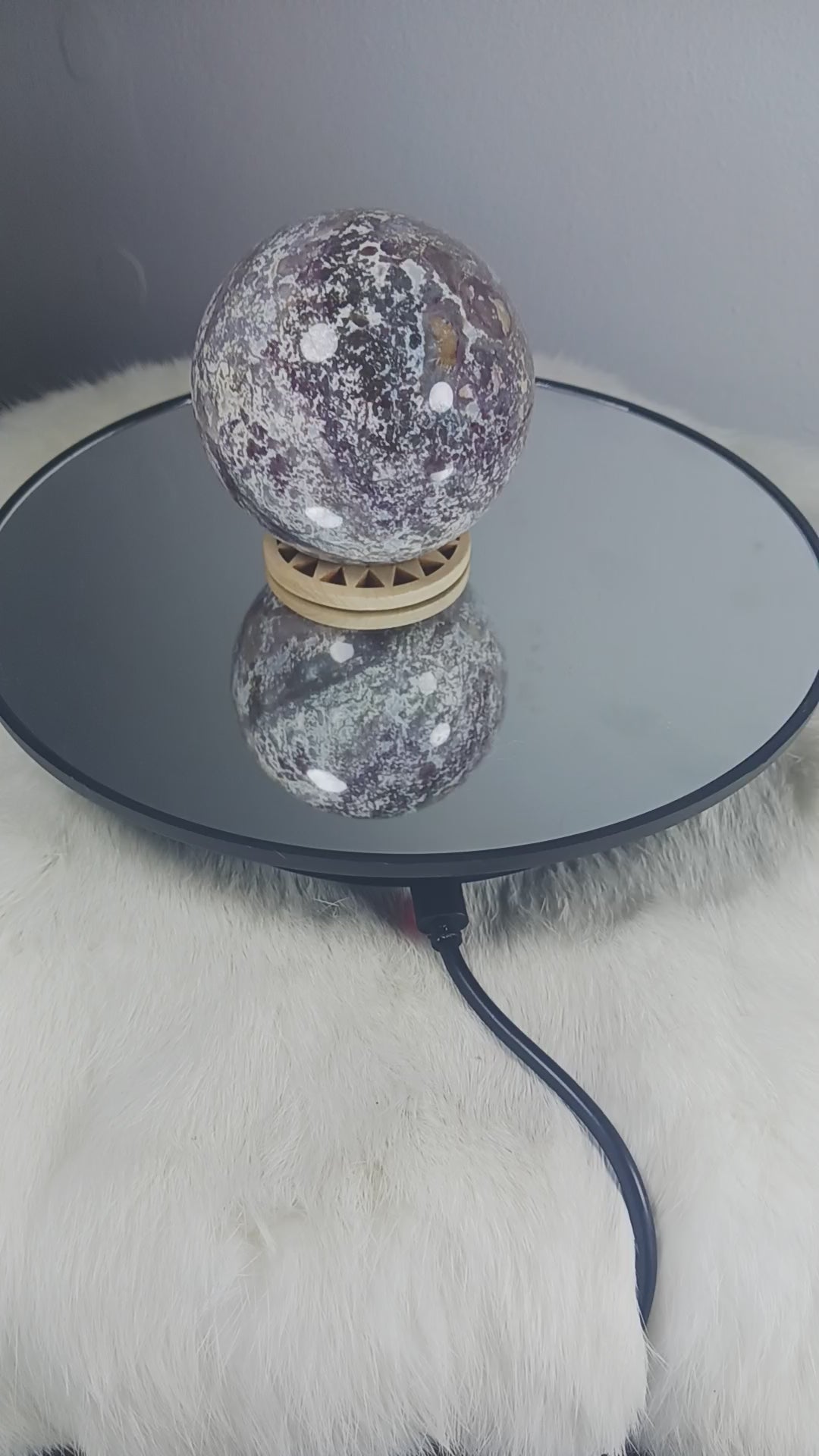 The 509G Ocean Jasper Crystal Sphere is a stunning handcrafted piece known for its unique patterns and vibrant colors that reflect the ocean's beauty. Weighing 509 grams, this sphere showcases the crystal's natural banding and inclusions that range from greens and blues to creamy whites and earthy browns, creating a captivating visual appeal. Ocean Jasper is believed to carry energies of healing, tranquility, and connection to nature, making this sphere not only an eye-catching decorative item but also a powerful metaphysical tool. Its smooth surface and polished finish enhance its aesthetic, making it a striking addition to any crystal collection or home decor.