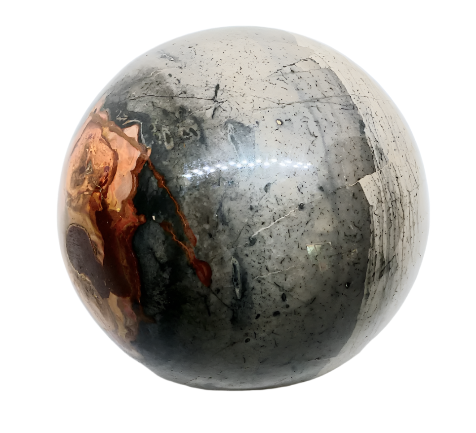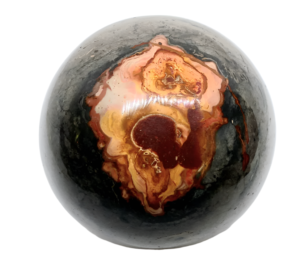 The handmade 662G Polychrome Jasper Crystal Sphere is a stunning and unique piece characterized by its vibrant, multicolored patterns that swirl throughout the crystal, showcasing natural earth tones of reds, greens, yellows, and creams. Weighing 662 grams, this polished sphere not only highlights the beauty of the stone but also serves as a captivating decorative item and a potential source of positive energy and grounding properties associated with jasper. Each sphere is one-of-a-kind, reflecting the individuality of the stone from which it is crafted, making it a perfect addition to any crystal collection or an excellent gift for enthusiasts.