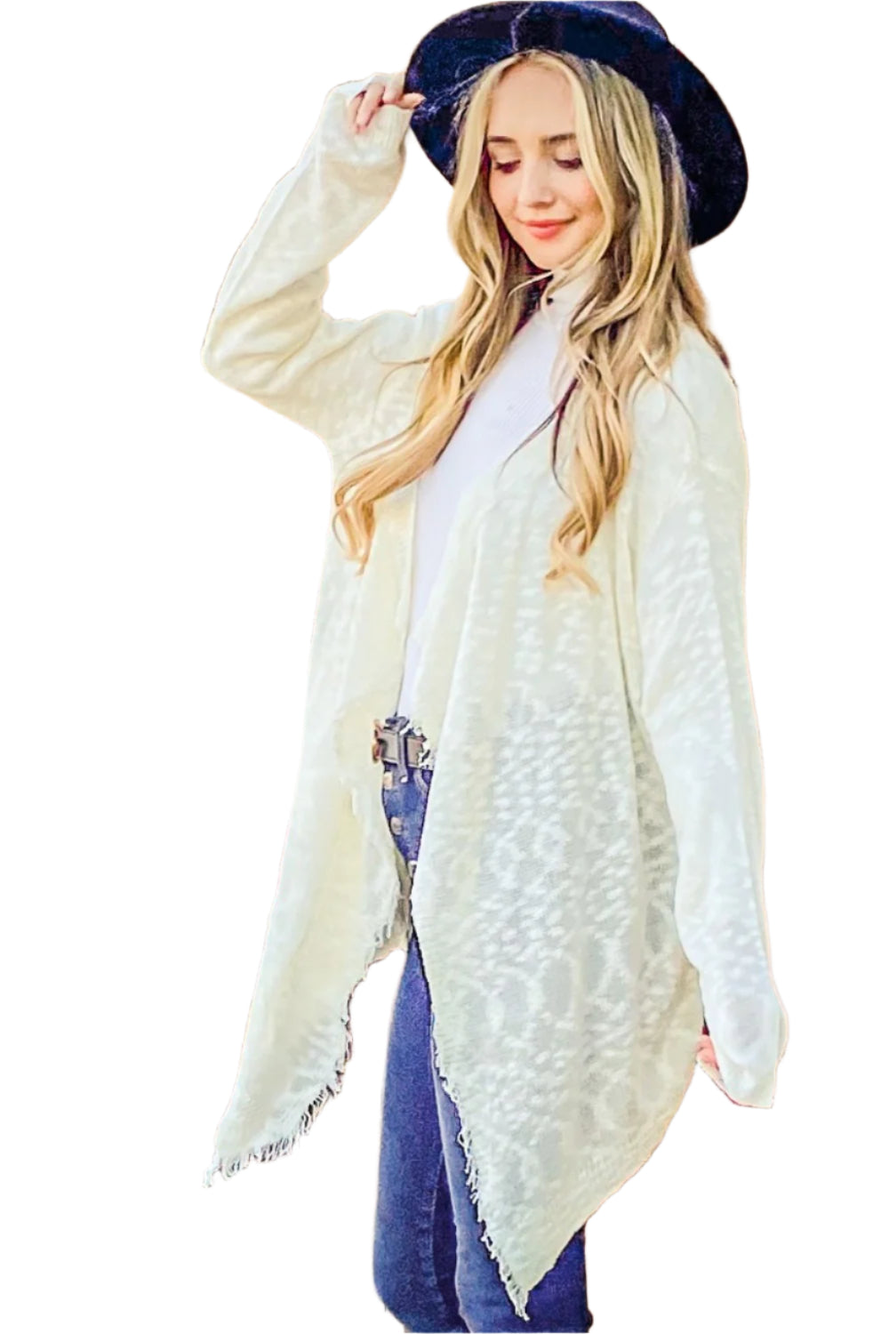 The Textured Knit Fringe Hem Cardigan features a cozy, textured knit that adds warmth and style. The fringe hem provides a trendy, playful touch, enhancing the cardigan’s visual appeal. Its open-front design allows for easy layering over various outfits, making it a versatile piece. Perfect for adding a touch of bohemian flair to your look, this cardigan is both fashionable and functional. The soft material ensures comfort, making it a go-to for cooler days.