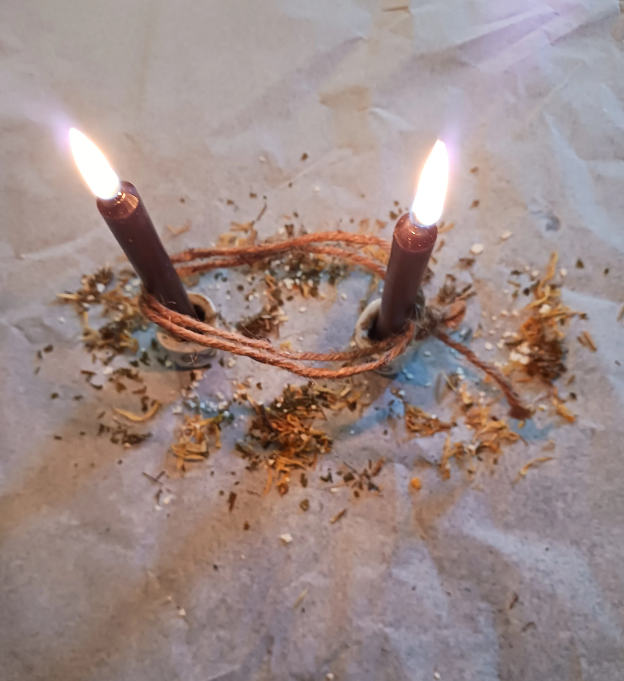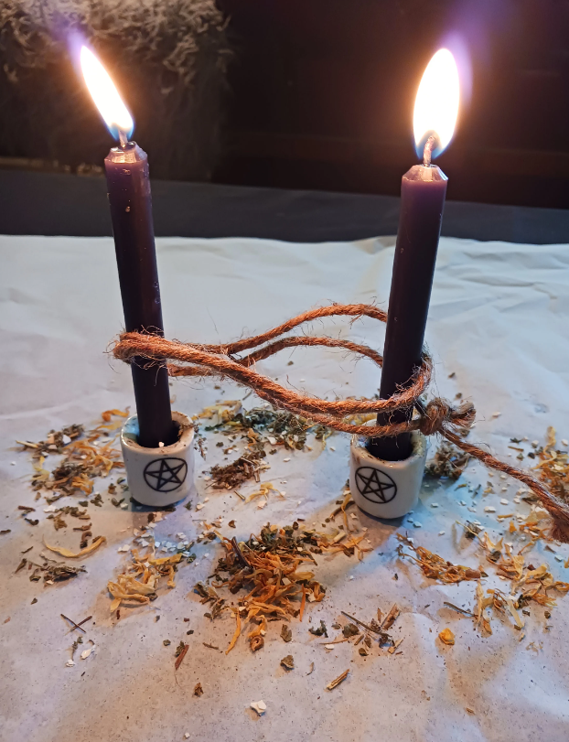 The handmade Bond Breaker Spell Kit is thoughtfully designed to assist in breaking unwanted bonds or ties. It includes five black candles, symbolizing the banishment of negativity, alongside an herb pouch filled with carefully selected herbs to enhance your spellwork. A sturdy cord is included for tying intentions, and a specially blended oil is provided to anoint the candles or perform rituals. Comprehensive instructions accompany the kit, guiding the user step-by-step through the process of effectively conducting their spell for clarity and freedom.