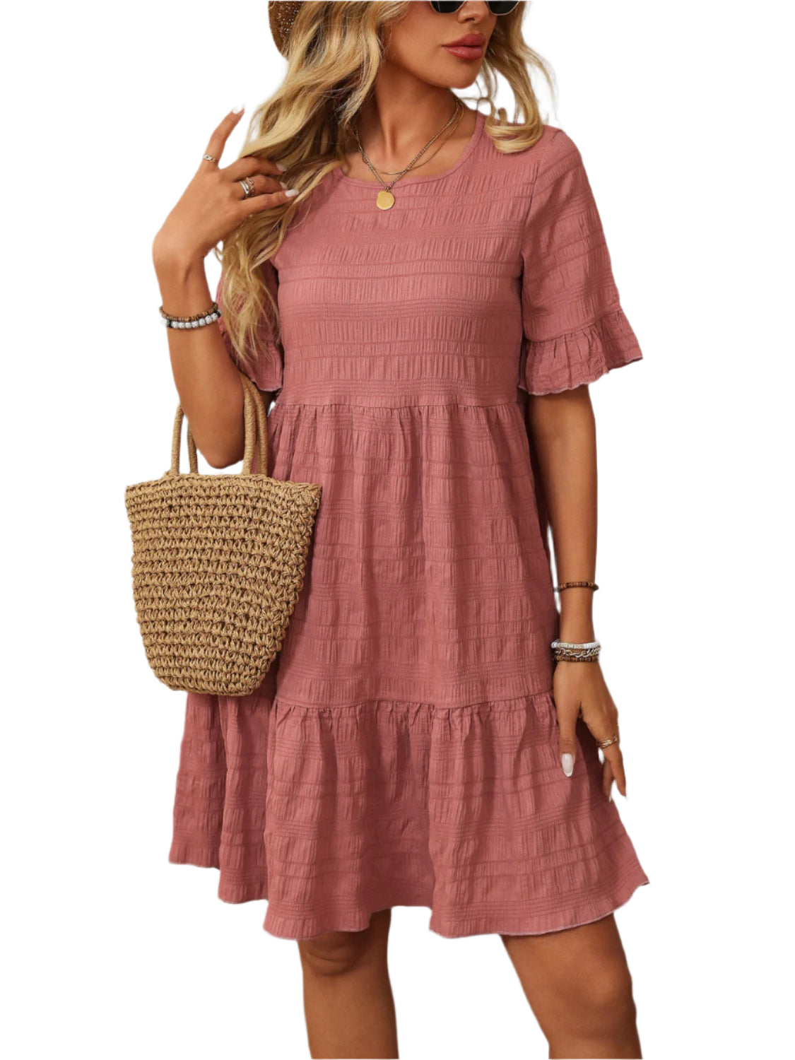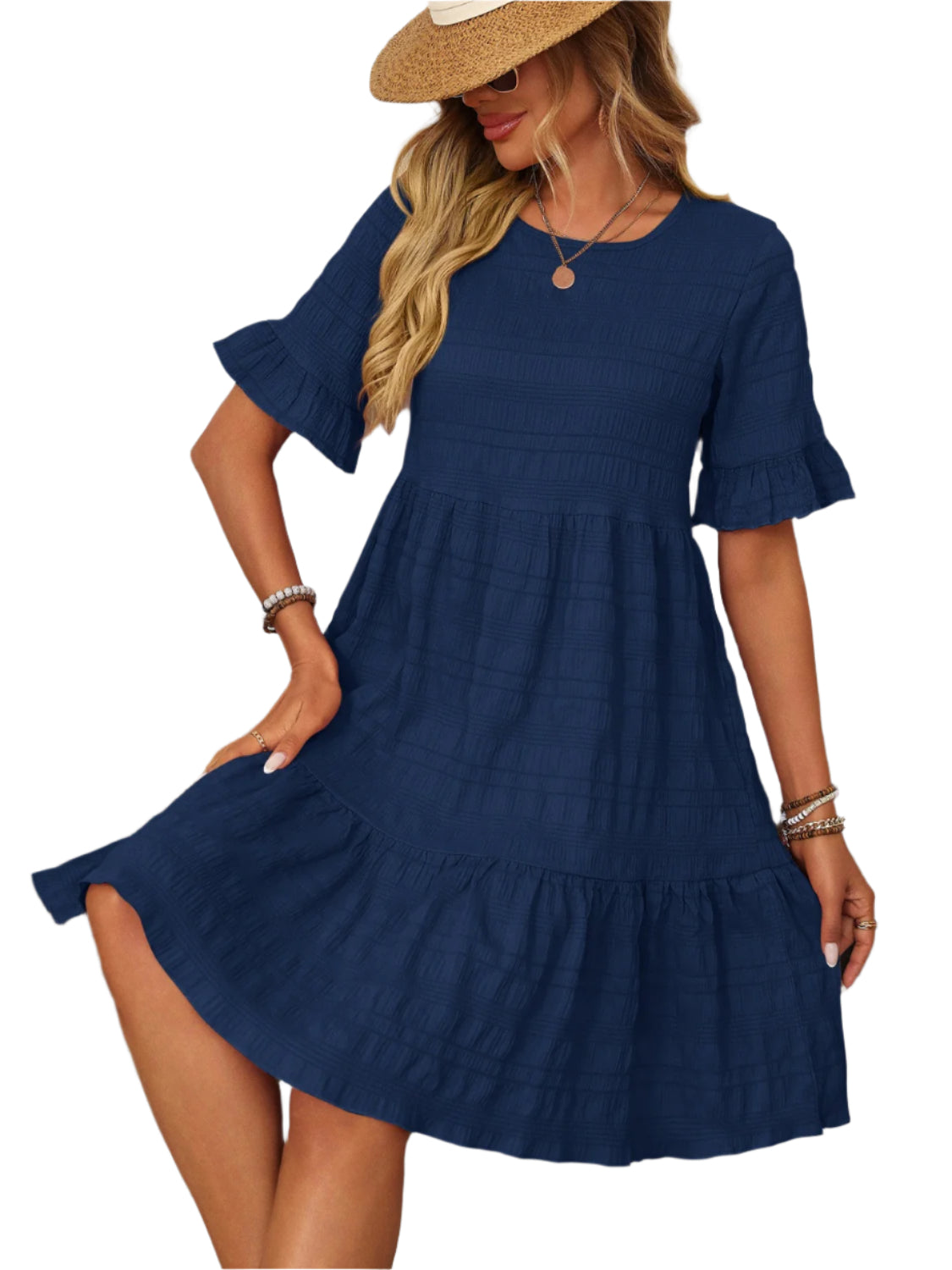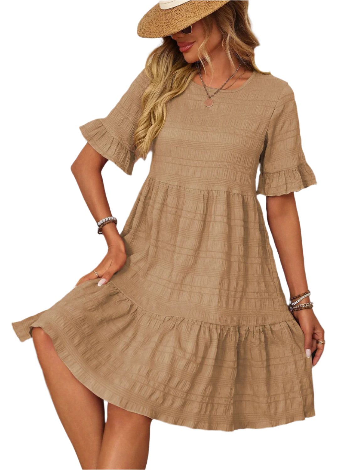 Mandy Ruffled Ruched Round Neck Half Sleeve Dress
