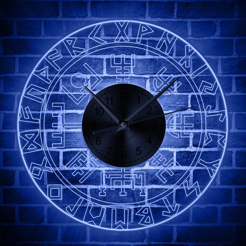 Norse Elder Futhark Runes Transparent Acrylic LED Lighting Wall Clock