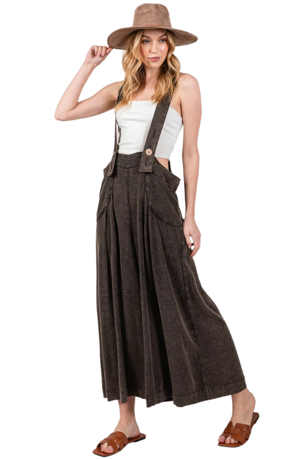 The Wide Strap Wide Leg Overalls are a versatile and stylish wardrobe staple that combines comfort with fashion-forward design. The wide straps provide a touch of retro charm while offering support and a flattering silhouette. The wide leg cut adds a trendy and modern twist to the classic overall style, creating a chic and effortless look. Perfect for casual outings or days when you want to stand out, these overalls can be dressed up or down with ease. Pair them with a simple tee or blouse for a laid-back vibe, or elevate the outfit with a statement top and heels for a more polished ensemble. Embrace comfort and style in these Wide Strap Wide Leg Overalls, a must-have piece for any fashion-forward wardrobe.