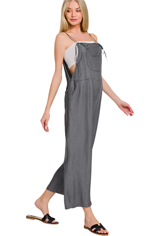 Zenana Washed Adjustable Strap Wide Leg Denim Overalls